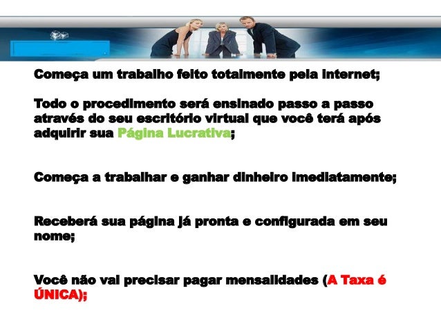 A Página Lucrativa sem Dúvida é um dos Melhores do Brasil porque não é Marketing de Rede ou Multínivel, não é Programa de Afiliados ou Algo Parecido, não é Pirâmide Financeira, não é Mala Direta ou Sistemas de Ficar Rico da Noite para o Dia, e Sim um Sistema onde Você: